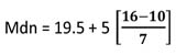 L = 20 - 0.5 = 19.5 i = 5 = 10 = 7แทนค่าในสูตร = 19.5 - 4.2