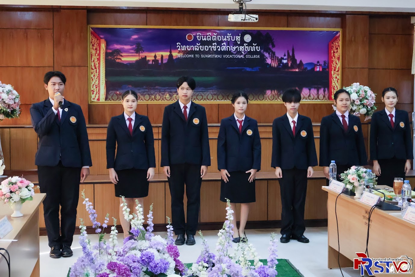 วันที่ 26 พฤศจิกายน 2568 วิทยาลัยอาชีวศึกษาสุโขทัย โดย นายมารุต รื่นรวย ผู้อำนวยการวิทยาลัยอาชีวศึกษาสุโขทัย พร้อมด้วยท่านรองผู้อำนวยการ 4 ฝ่าย ต้อนรับคณะกรรมการ การประเมิน องค์การมาตรฐานดีเด่น และสมาชิกดีเด่นโครงการภายใต้การนิเทศ ประเภทสถานศึกษาขนาดกลาง ระดับจังหวัด ประจำปีการศึกษา 2568 ณ ห้องประชุมเปี่ยมสุขวิทยาลัยอาชีวศึกษาสุโขทัย