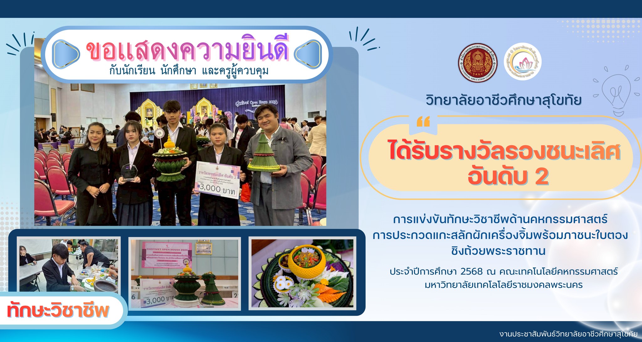 วิทยาลัยอาชีวศึกษาสุโขทัย ขอแสดงความยินดีกับแผนกวิชาคหกรรมศาสตร์