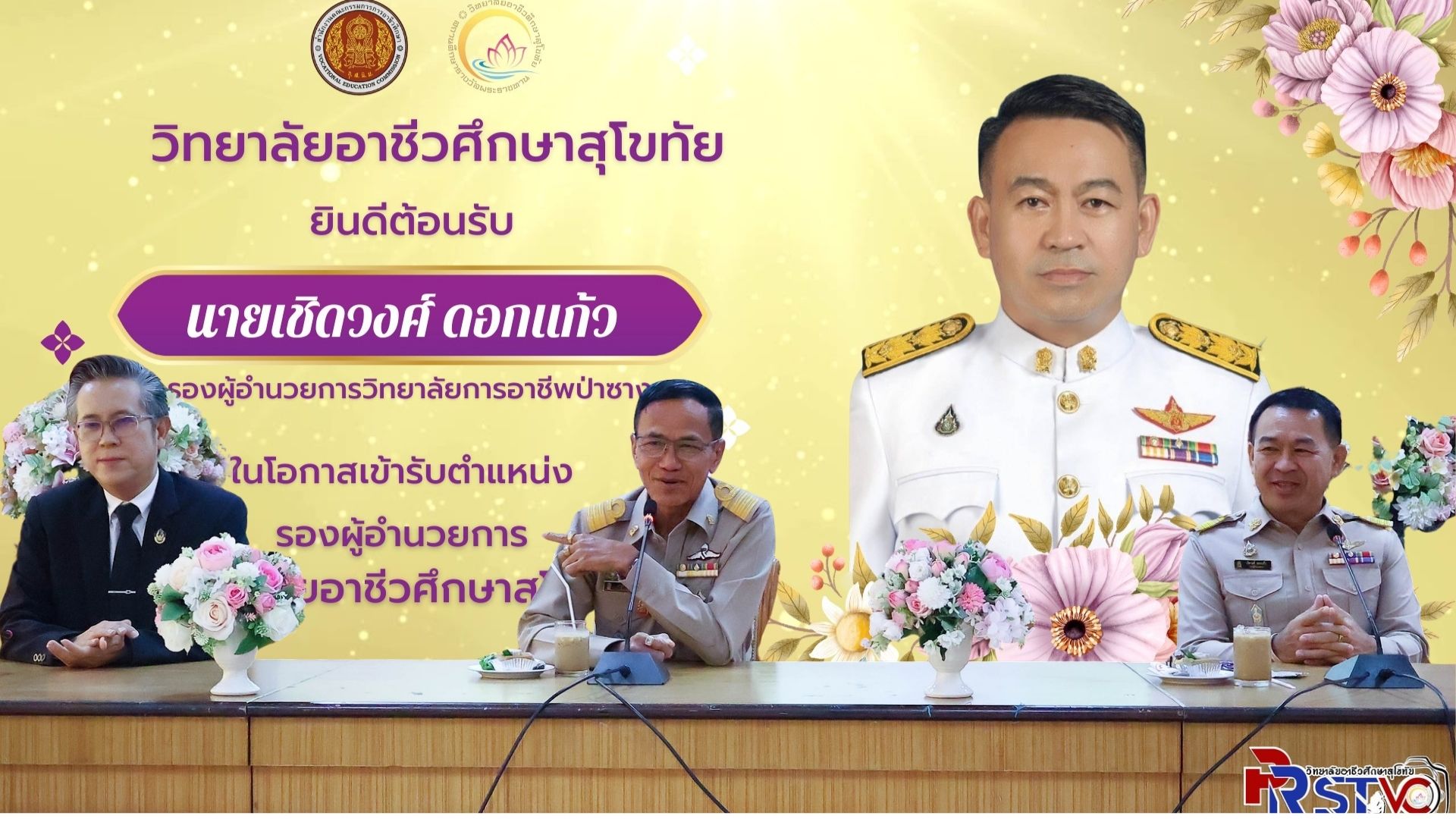 เนื่องในโอกาสย้ายมาดำรงตำแหน่ง รองผู้อํานวยการวิทยาลัยอาชีวศึกษาสุโขทัย ณ ห้องประชุมเปี่ยมสุข และได้ร่วมต้อนรับคณะผู้บริหาร คณะครู และบุคลากรทางการศึกษา
