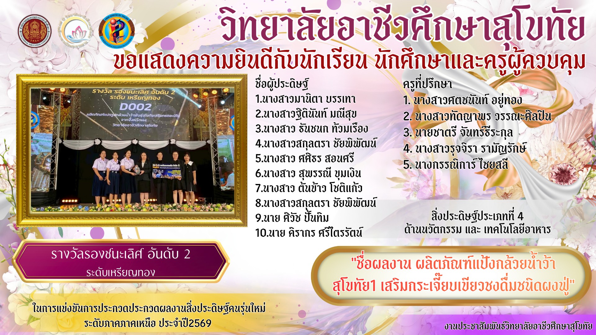 วิทยาลัยอาชีวศึกษาสุโขทัย ขอแสดงความยินดี กับนักเรียน นักศึกษา และครูที่ปรึกษาผลงานสิ่งประดิษฐ์คนรุ่