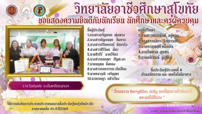 วิทยาลัยอาชีวศึกษาสุโขทัย ขอแสดงความยินดี กับนักเรียน นักศึกษา และครูที่ปรึกษาผลงานสิ่งประดิษฐ์คนรุ่